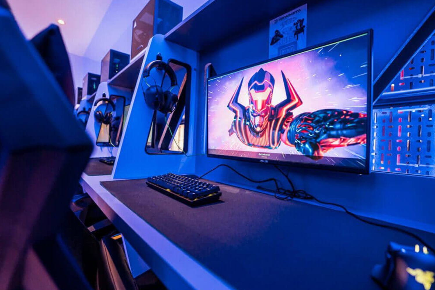 استمتع بتجربة لعب لا مثيل لها في نوادينا المجهزة بأحدث أجهزة الكمبيوتر، وشاشات العرض، والمقاعد المريحة، والإضاءة المناسبة، بالإضافة إلى توفير خدمة الإنترنت عالية السرعة والمشروبات والوجبات الخفيفة. نحن نضمن لك كل ما تحتاجه للاستمتاع بتجربة لعب مثالية.